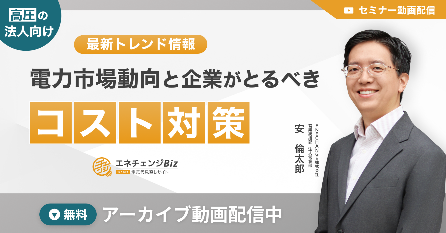 本動画は、先月開催した「電力市場動向と企業が取るべきコスト対策セミナー」セミナーのアーカイブ動画です。