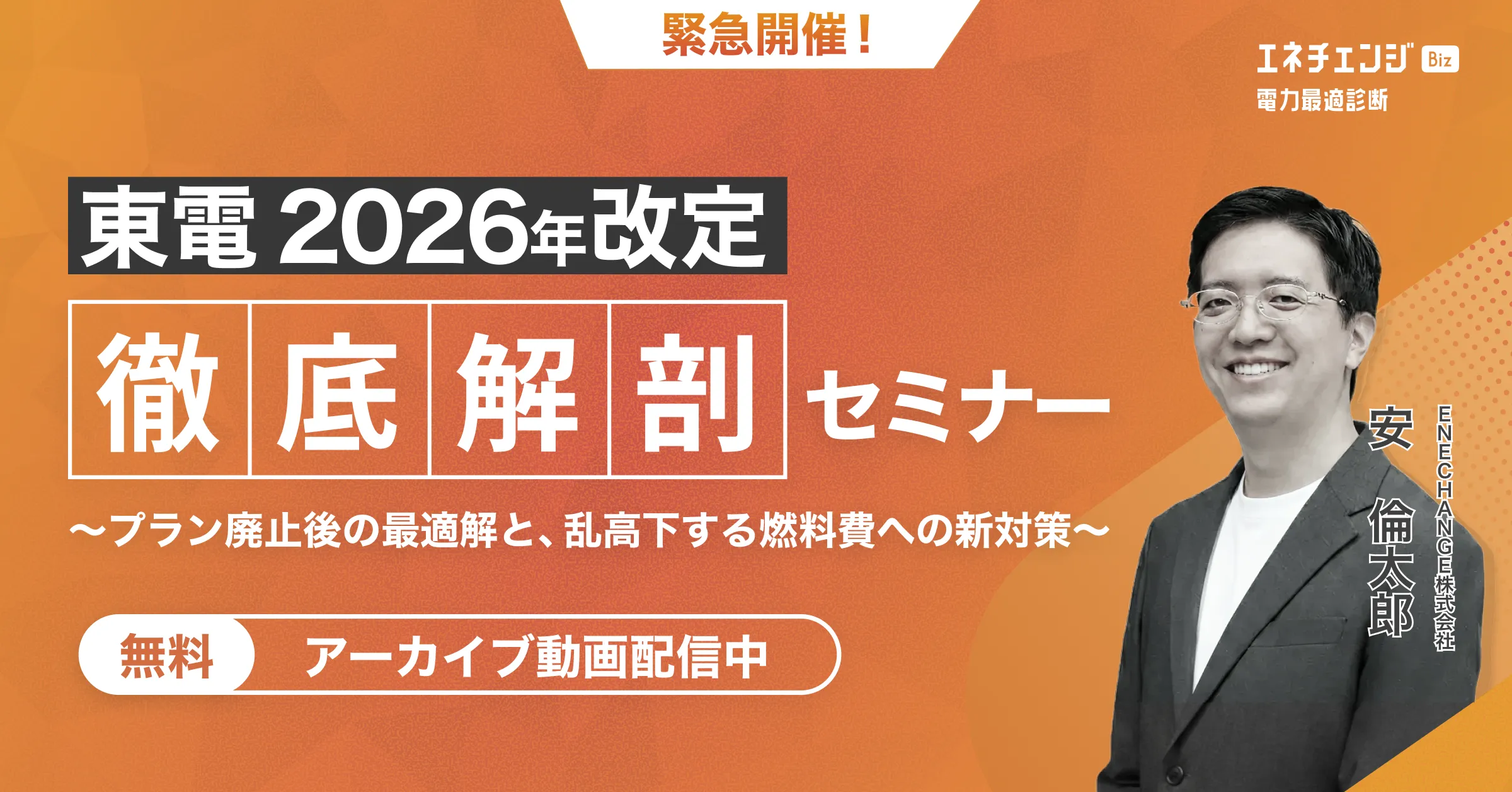 本動画は、直近開催した「東電2026年改定・徹底解剖 ~プラン廃止後の最適解と、乱高下する燃料費への新対策~」セミナーのアーカイブ動画です。