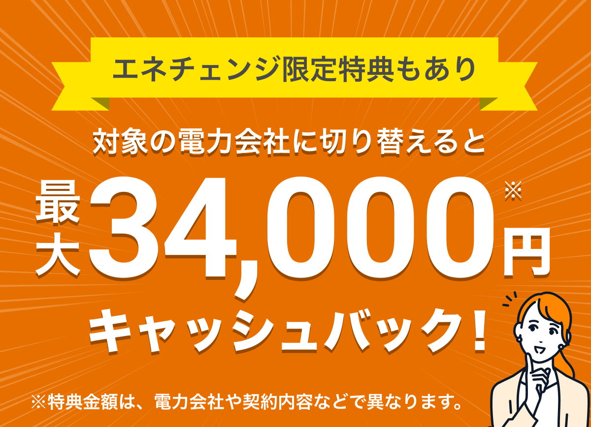 - さらに、エネチェンジ限定特典として、最大34,000円のキャッシュバックもあるんです!(※2)