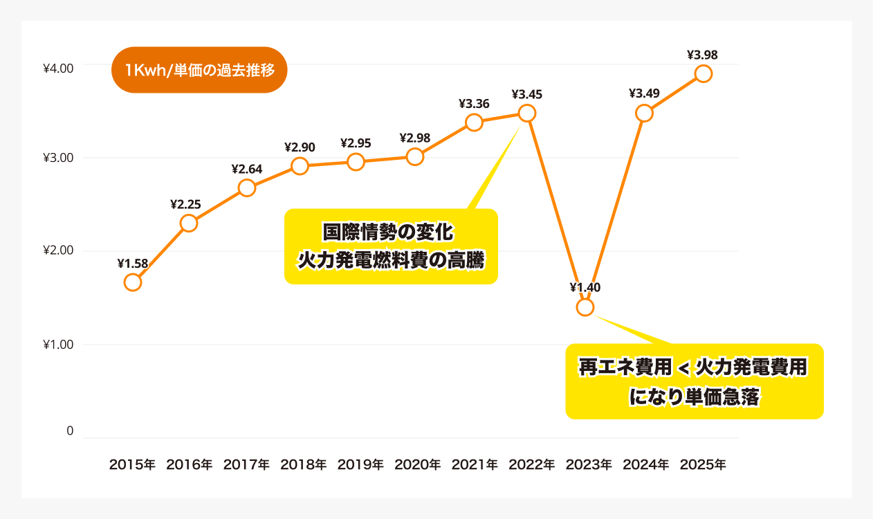 電気代の“単価”そのものが別の理由で上がり続けている のです。